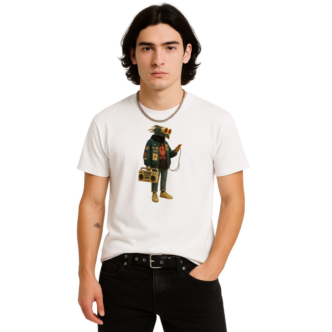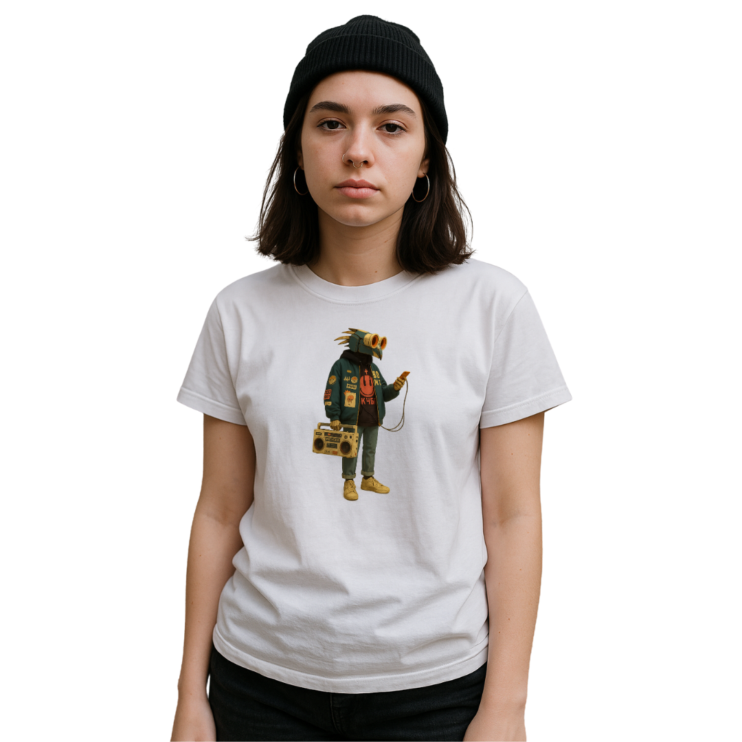 EchoCrow defends the voice of the past against the noise of today. His boombox may look like an antique, but the recordings inside are still fighting to survive. The mask doesn’t protect him from viruses—it shields him from people. He roams the streets, collecting hope from lost frequencies. For him, music is a way of remembering—not what he’s forgotten, but who he is. Every patch he wears is a scar, carried with pride. Because silence is contagious—and he won’t let it spread.
